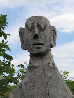 Die Kyrillköpfe....mit einer Kettensäge aus den Baumstümpfen von einem Künstler hergestellt.....